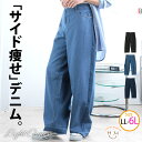 【期間限定クーポン配布】 大きいサイズ レディース パンツ | サイドライン加工 セミワイド デニムパンツ _ ボトムス ワイドパンツ LL 3L 4L 5L 6L 夏 夏物 夏服 夏用 ジーパン ストレート ぽっちゃり ゆったり プラスサイズ かわいい カジュアル [145 353037]