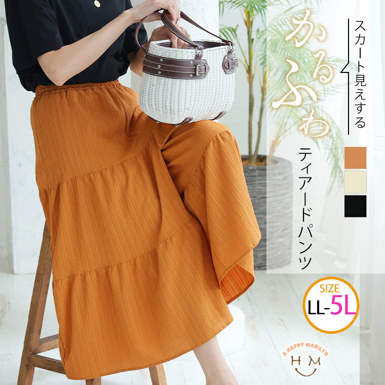 【期間限定クーポン配布】 大きいサイズ レディース パンツ | ドビー楊柳 ティアード パンツ _ ボトムス ガウチョパンツ ワイドパンツ イージーパンツ LL 3L 4L 5L 夏 夏物 夏服 夏用 ぽっちゃり ゆったり プラスサイズ かわいい おしゃれ カジュアル [145 453102]