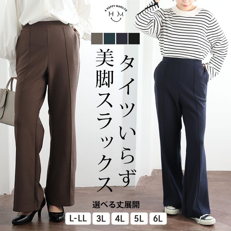 【期間限定クーポン配布】 大きいサイズ レディース パンツ | タイツいらずで下半身ぽかぽか! 2丈から選べる 美脚 セミフレアパンツ _ ボトムス フレア LL 3L 4L 5L 6L 秋 秋物 秋服 冬 冬物 冬服 ぽっちゃり ゆったり プラスサイズ あったか [145 655027]