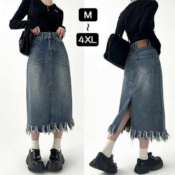 デニムスカート レディース ヴィンテージ加工 バックスリット デニム素材 ミモレ丈 膝下 ロング ロングスカート 体型カバー 無地 痩せ見え 通勤 ペンシルスカート シンプル ゆったり 大きいサイズ 大人 ハイウエスト 無地 可愛い 春夏 秋 M L XL 2XL 3XL 4XL dm145t2