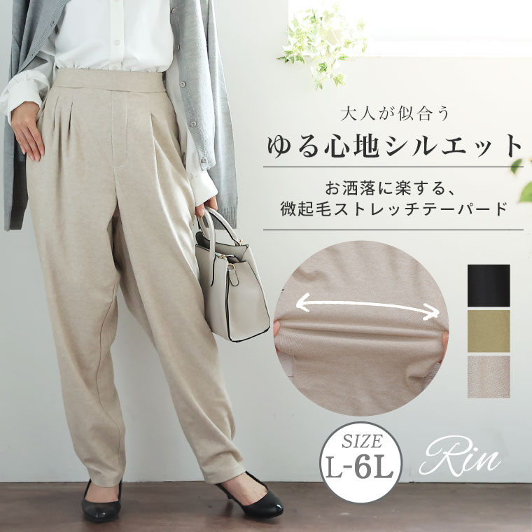 大きいサイズレディース パンツ | Rin タック テーパードパンツ _ ボトムス LL 3L 4L 5L 6L 秋 冬 ぽっちゃり ゆったり プラスサイズ リン きれいめ 上品 華やか 高見え エレガント [145 425006]