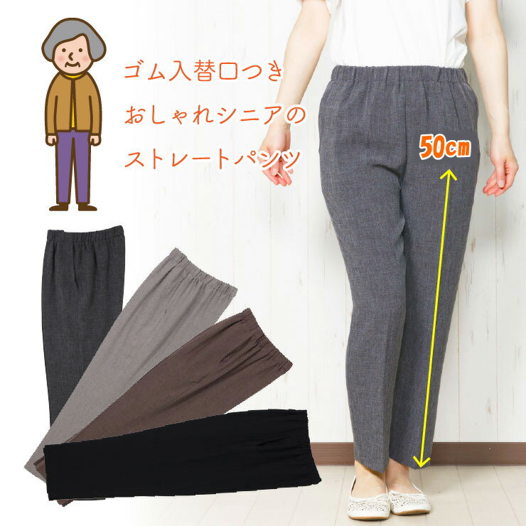 [6668]おなか楽 ゴムパンツ!身長145cmさんにぴったり ウエストゴムで作ったフリーパンツ 日本製 夏 ストレートパンツ 60代 70代 80代 90代 シニア ベージュ モカ ライトグレー 茶 紺 黒 S M L LL 3L MP 戸田被服 シニアファッション