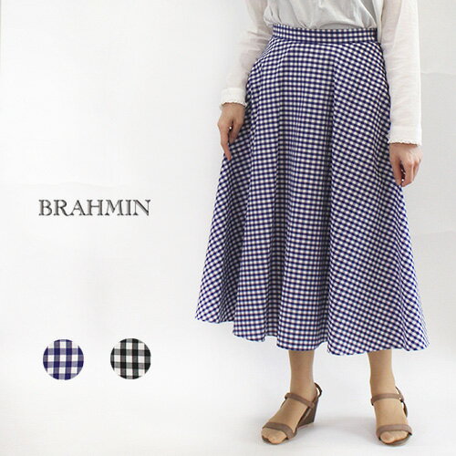 【SALE 50%OFF】 \最大3000円OFFクーポン×P最大10倍/ BRAHMIN ブラーミン B20106 ボトムス フレアスカート ミディ丈 サイドファスナー ギンガムチェック レディース 女性 シンプル 可愛い 綿100 洗濯可 パープル ブラック 38 9号 あす楽 40代 50代 60代