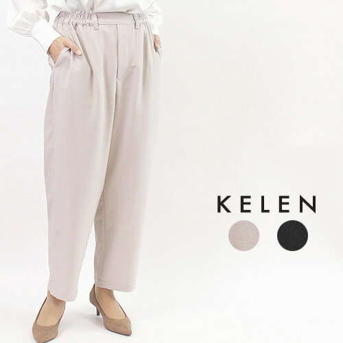 【SALE】 \最大3000円OFFクーポン×P最大10倍/ KELEN ケレン LKL24HPT2051 「ROY」 ボトムス テーパードパンツ ズボン レディース 女性 大人 ポケット ウエストゴム 春 秋 M 9 11 シンプル フォーマル カジュアル 黒 ライトベージュ あす楽 40代 50代