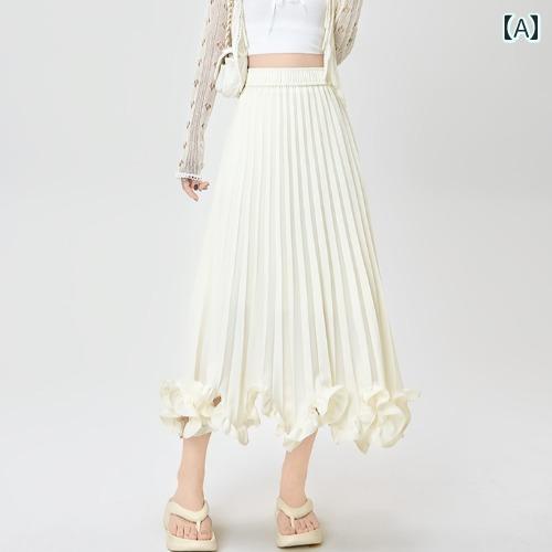 フリル スリットスカート La Chapelle 花びら イヤリング スカート レディース 夏 ハイウエスト スリム ミディアム 丈 aライン 小さい サイズ プリーツスカート