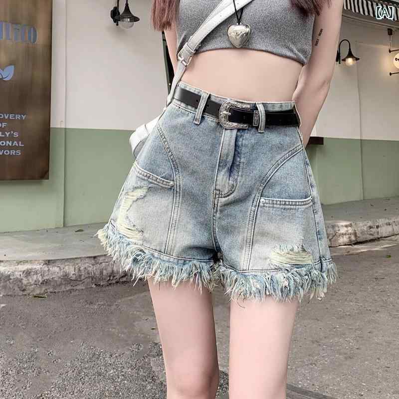 レディース ワイドパンツ ひんやり アメリカン レトロ ホット ガール リッピング ロー エッジ タッセル デニムショートパンツ レディース サマー ハイウエスト aライン ホット パンツ