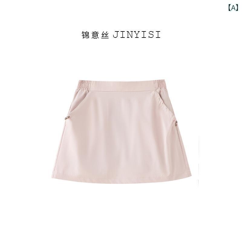 スカート レディース ハイウエスト A字スカート 無地 ミニスカート カジュアル スポーティ 伸縮性 接触冷感 春夏 ピンク系 カーキ グレー 黒