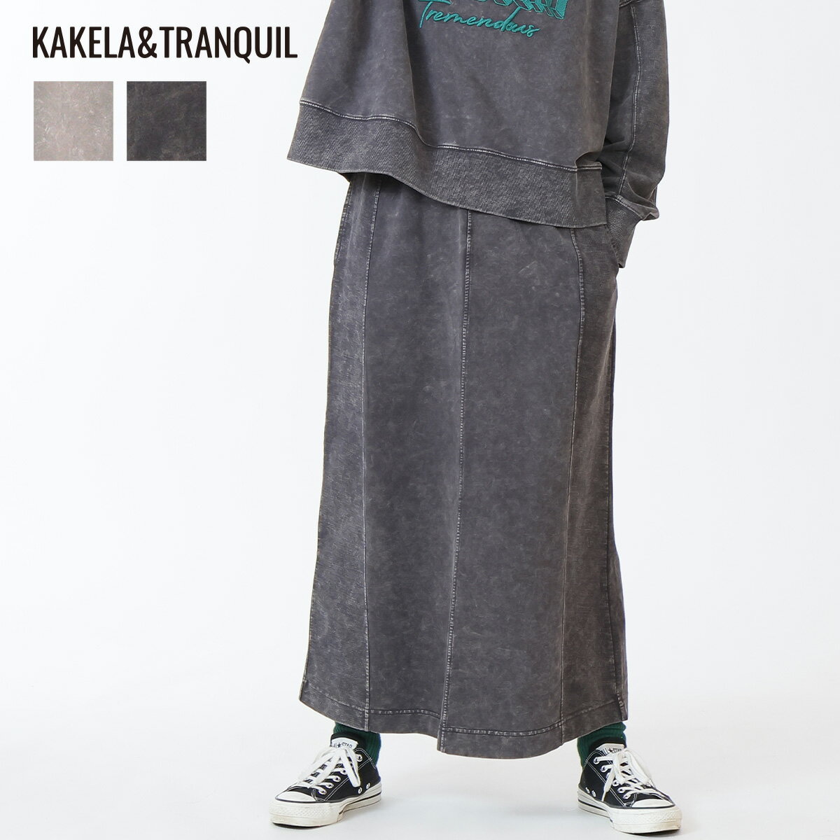 KAKELAandTRANQUIL ロングタイトスカート MINI裏毛 レディース ボトムス ロングスカートカケラ アンド トランクイル ピグメント ビンテージ加工 スリット入り 綿100% 冬 新作 カジュアル 軽め セットアップ タイト ファッション