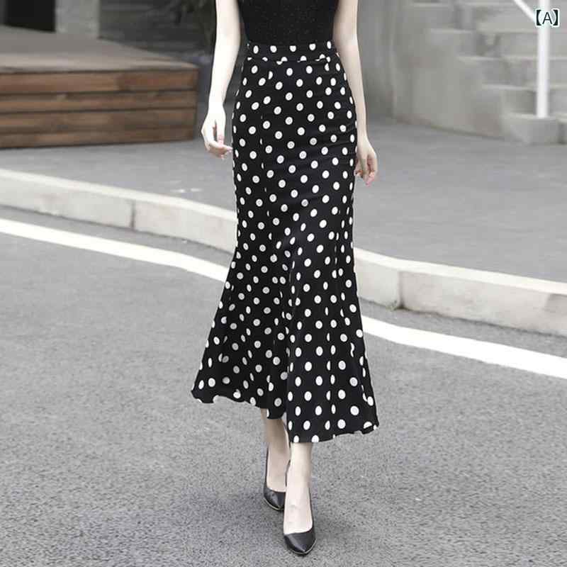 ドット柄スカート レディース 女性用 ロング スカート な サマー スタイル ドットの ドレープ性 着 痩せ ヒップに かかる フィッシュ テール エレガントな 通勤
