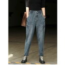 パンツ デニム レディース 大人 ジーンズ ハイウエストゴム ボタン ファスナー ポケット ロング 大きいサイズ ゆったり ゆるパン 体型カバー 着痩せ テーパード ウォッシュ ダメージ ズボン ボトムス ヴィンテージ風 おしゃれ カジュアル 青