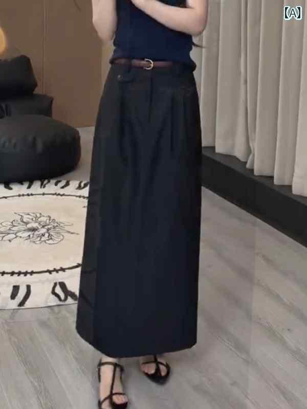 レディース スカート きれいめ 2025年の 黒の カジュアル スカート。 レディース 夏 ハイウエスト スリム ストレート aライン スカート シンプル
