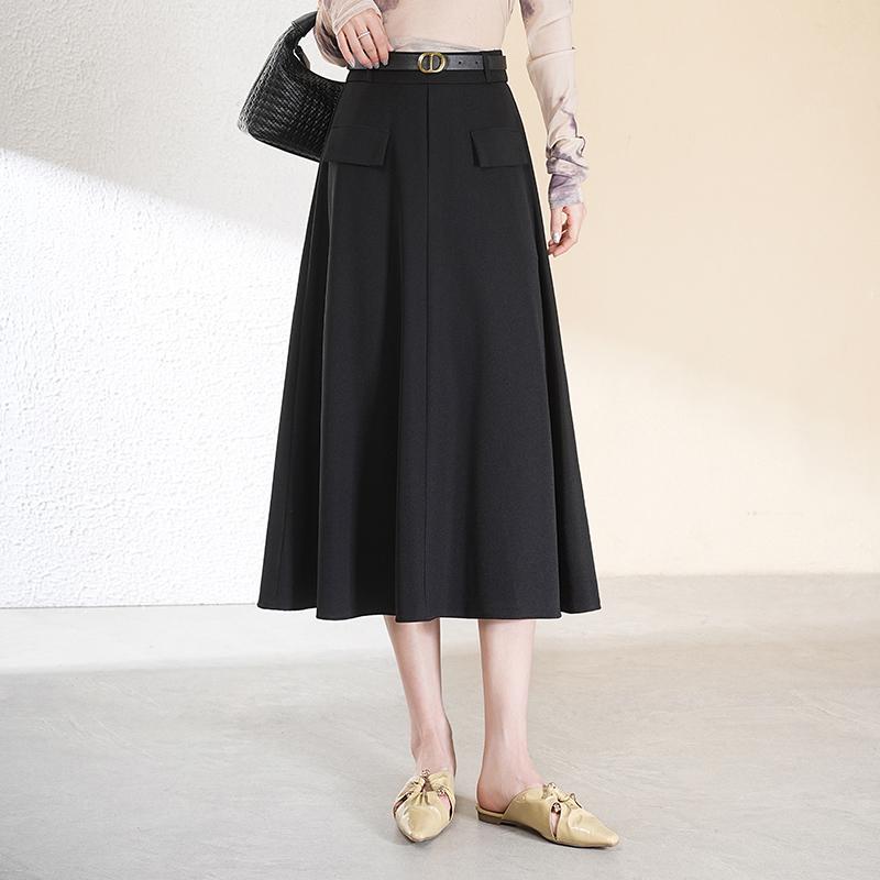 ・柄: 無地・生地: 金丝绒・素材: 丝绒・スカートタイプ: ハイウエストスカート・スカート丈: ロング・カラー: ブラック・サイズ: S, M, L, XL・スタイル: 通勤・素材構成: 95%以上