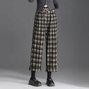 パンツ レディース 大きいサイズ ゆったり 落ち感 体型カバー 九分丈 ストレートパンツ ハイウエスト 通勤 オフィス カジュアル 秋冬 ポリエステル ストレッチ 中厚手 チェック柄