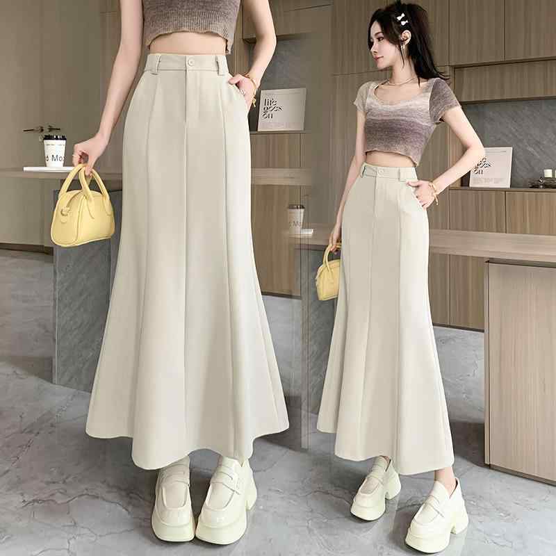 スカート レディース 韓国風 ポリエステル Aライン 魚尾 ミモレ丈 ひざ下丈 無地 切り替え マーメイドスカート タイトスカート エレガント 通勤 オフィスウェア 春