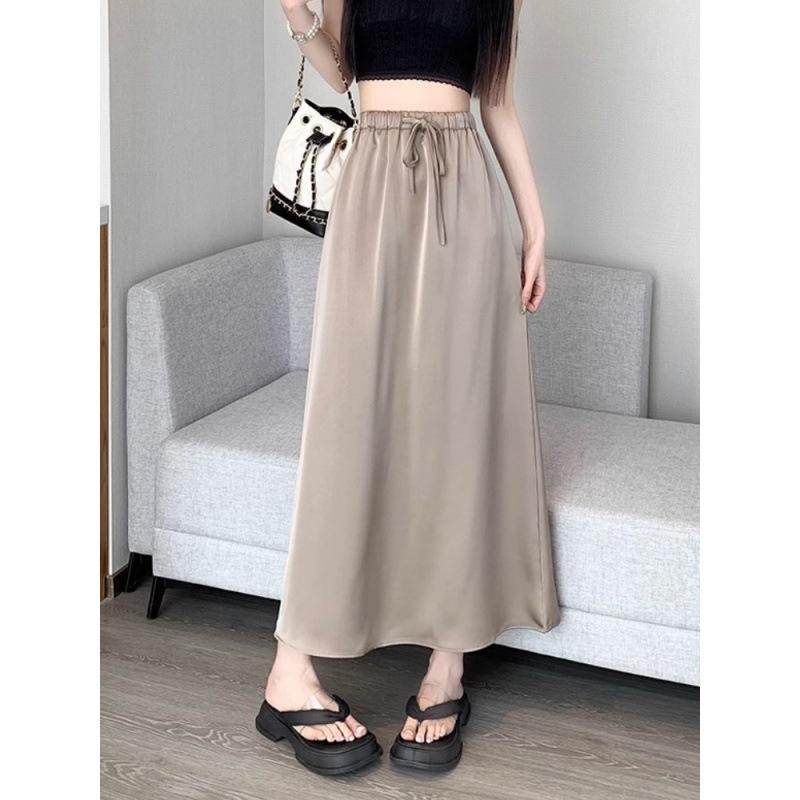 スカート レディース 春夏 サテンスカート Aライン ロング丈 ハイウエスト 体型カバー きれいめ エレガント オフィス カジュアル 普段使い フォーマル ブラック パープル グレー グリーン