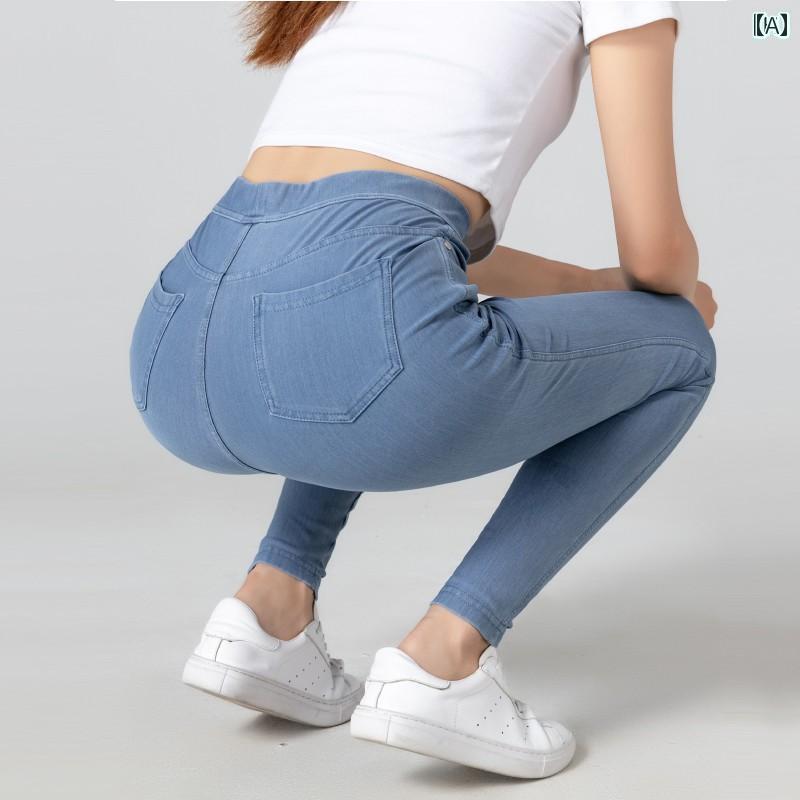 パンツ レディース ボトムス レディース 4 面高 弾性 ジーンズ 薄型 スタイル 春と 夏 伸縮性の ある ハイウエスト スリム 足 大きいサイズ 太い mm 冷感 タイトで