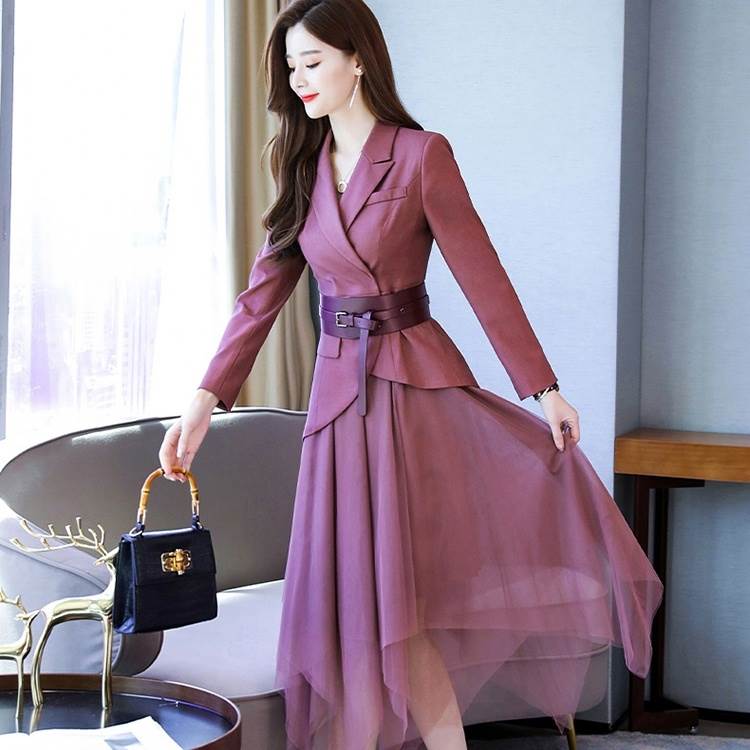 セットアップ ジャケット スカート ミモレ丈 長袖 Vネック 襟付き フレア ペプラム チュール ベルト ウエストマーク 前開き スリーピース 送料無料 個性的 M L XL 2XL フクシアピンク 黒 茶 かわいい 大人可愛い きれいめ 大人 上品 おしゃれ セットアップ 春 秋 レディース