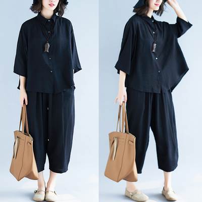 おしゃれな大人女性にぴったりな2点セット。ドロップショルダーの七分袖ブラウスに、ウエストゴムのラクチンジョガーパンツがセットになっています。Vネックの襟ありデザインで女性らしさをキープしつつ、シンプルな無地でスタイリングに幅広さをプラスします。休日やお出かけ、部屋着など、いろんなシーンで活躍してくれるアイテムです。フィット感のいいフリーサイズ(ワンサイズ)で体系カバーもバッチリ。黒、ネイビー、の2カラーをご用意しております。自分らしいスタイルを楽しんでください!※洗濯方法や素材の特性など、ご使用前に必ずご確認ください。色展開 ネイビー ブラックサイズ ワンサイズトップス・着丈:62-75cm バスト:130cm 肩幅:52cm 袖丈:45cmボトムス・ズボン丈:80cm ウエスト:64-103cm ヒップ:120cm 《商品について》※当ショップは海外からのノーブランド商品になります。海外製品のため日本製に比べ品質などが少々劣る場合がございます。糸のほつれ、多少の汚れやシミ、ファスナーが固い、デザインの若干の違いなどは不良品には該当しませんのでご了承ください。また、元々タグや選択表示がないものもございますのでご了承ください。お手持ちの携帯やPCの画面設定の影響により、実物と色味が異なって見える場合がございます。また、上記サイズも目安ですので若干異なっている場合がございます。予めご了承ください。※当ショップはお客様より注文を確認した上でメーカーに発注しておりますので返品、交換は出来かねます。ご了承下さいませ。《発送について》海外からのお取り寄せ商品のため、ご入金確認後、お届けまでに「10-24日程度」のお時間がかかります。また海外の事情などにより通常よりお時間がかかってしまう場合もございます。欠品や商品の不具合などにより、商品をお届けすることができず、ご注文をキャンセルさせていただく場合もございますのでご了承ください。※当ショップの商品はお取り寄せ商品につき、入金確認後メーカーへ発注させて頂きます。※メーカーにて在庫切れの場合は、速やかに返金させて頂きます。《返品についての特約に関する事項》ご注文確定後、発注後のキャンセルやサイズなどの内容変更は承っておりません。注文時によくご確認ください最後までご覧くださり、ありがとうございました。PT4487