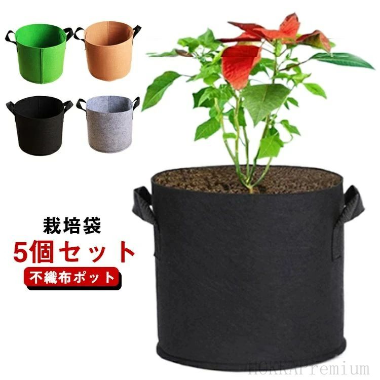 栽培袋 植え袋 通気性 ガーデン diy 野菜栽培 布鉢 5個セット フェルト 植木鉢 プランター 不織布ポット 不織布ポット 丸い布鉢