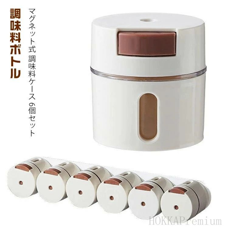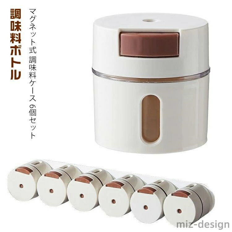 マグネット式 調味料ケース 6個セットコンパクトサイズだから使いやすさバツグン!パッと使えてお料理のスピードもアップ!片手で簡単ワンプッシュ!取り外し可能でお手入れも簡単大きめのボトルの口 サイズ 6個セット サイズについての説明 単個:6.4*6.7cm セット:38*6.4*6.7cm 素材 プラスチック 色 ホワイト 備考 ●サイズ詳細等の測り方はスタッフ間で統一、徹底はしておりますが、実寸は商品によって若干の誤差(1cm〜3cm )がある場合がございますので、予めご了承ください。 ●製造ロットにより、細部形状の違いや、同色でも色味に多少の誤差が生じます。 ●パッケージは改良のため予告なく仕様を変更する場合があります。 ▼商品の色は、撮影時の光や、お客様のモニターの色具合などにより、実際の商品と異なる場合がございます。あらかじめ、ご了承ください。 ▼生地の特性上、やや匂いが強く感じられるものもございます。数日のご使用や陰干しなどで気になる匂いはほとんど感じられなくなります。 ▼同じ商品でも生産時期により形やサイズ、カラーに多少の誤差が生じる場合もございます。 ▼他店舗でも在庫を共有して販売をしている為、受注後欠品となる場合もございます。予め、ご了承お願い申し上げます。 ▼出荷前に全て検品を行っておりますが、万が一商品に不具合があった場合は、お問い合わせフォームまたはメールよりご連絡頂けます様お願い申し上げます。速やかに対応致しますのでご安心ください。
