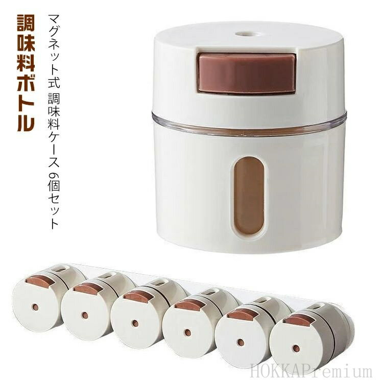 6個セット 塩 壁掛け調味料入れ マグネット式 省スペース キッチン用 調味料入れ スパイス 調味料入れ 調味料ポット 砂糖 ワンタッチ 防水防湿 片手で簡単 組み立て不要 調味料ストッカー 調味料ケース 容器 調味料ボトル
