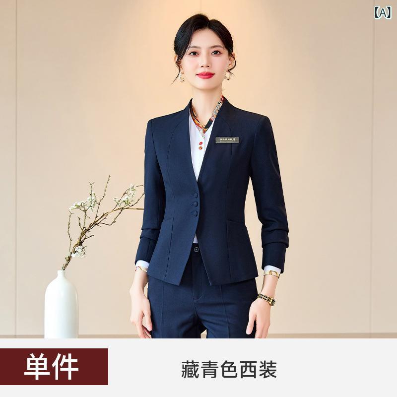 セットアップ レディース ビジネススーツ テーラードジャケット ジレベスト アンサンブル オフィス 事務服 制服 ホテル サービス業 通勤 秋冬 ポリエステル スパンデックス ネイビー ブラック グレー