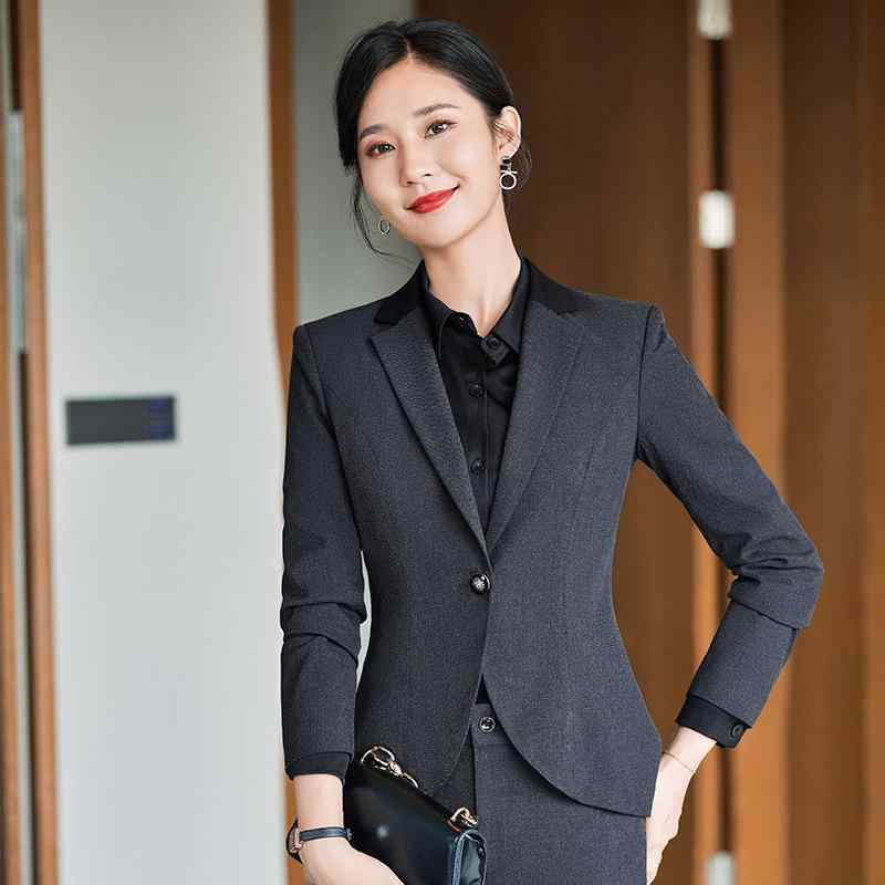 スーツ レディース オフィス ビジネス セットアップ 通勤 ワークウェア 秋冬 グレー 長袖 ジャケット テーラードジャケット フォーマル ユニフォーム 事務服 ポリエステル スパンデックス 伸縮性 エレガント 上品