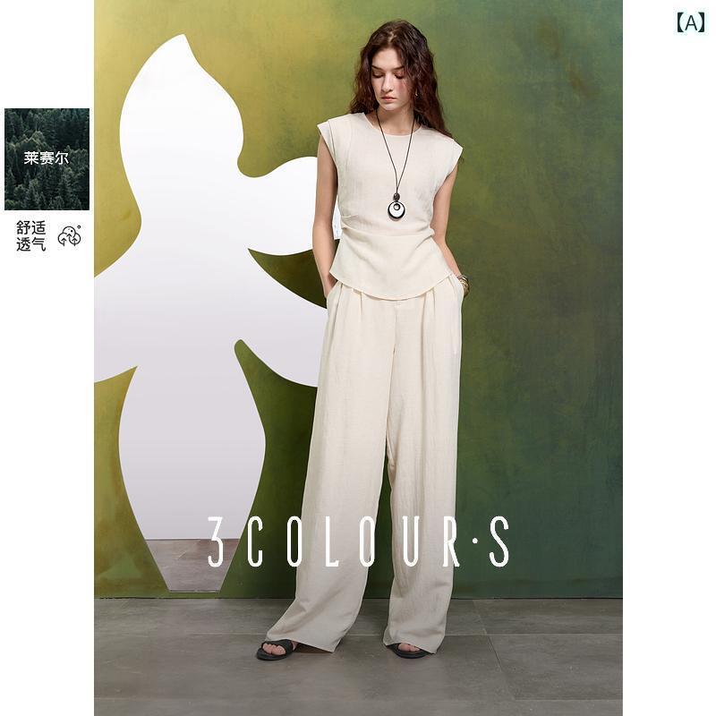 レディース ツーピース シルク リヨセル リネン トリコロール 2025 春夏 ツーピース スーツ シャツ ワイド レッグ パンツ レディース S