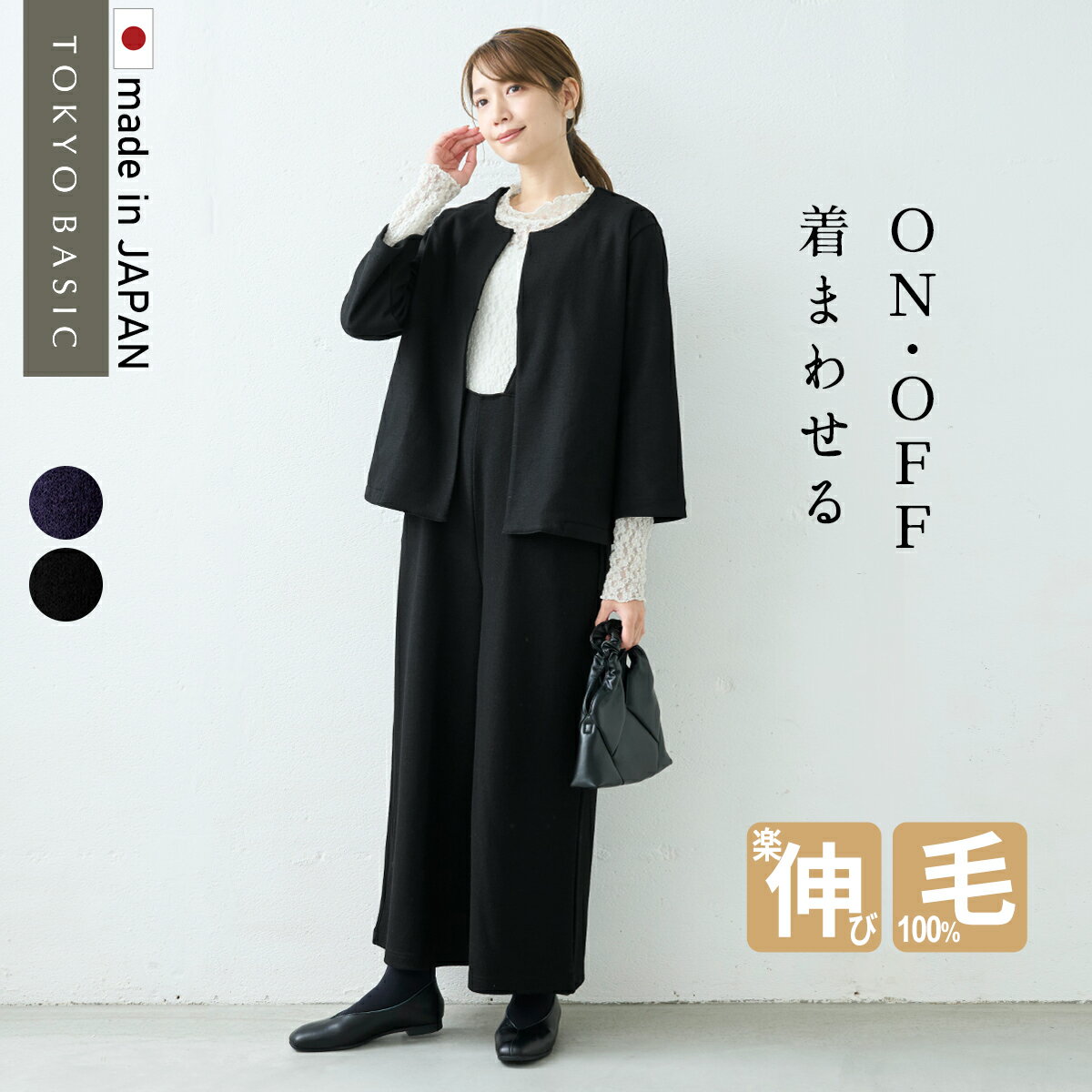 卒業式 母 服装 50代 パンツスーツ セレモニースーツ 圧縮 ウール100% こなれ ジャケット オーバーオール 2点セット 日本製 30代 40代 60代 きれいめ 上下セット 礼服 七五三 ママ 祖母 ストレッチ 入学式 ママスーツ 秋冬 秋 冬 サロペット 入学式 ママスーツ パンツスーツ ウール100% 毛100% セットアップ 顔合わせ 法事 冠婚葬祭 学校行事 参観日 ママ会 カジュアル 黒 ブラック 紺 ネイビーTOKYO BASIC ウール100% 圧縮ウール100% こなれジャケット + オーバーオール 2点セット SIZEフリー COLORネイビー・ブラック カラー ネイビー・ブラック サイズ サイズ計測方法はコチラ>>> 原産国 日本製 素材 毛100% 洗濯表記 ドライ 裏地 なし ポケット あり モデル着用サイズ フリーサイズ メール便 × 特徴 ON/OFF着回しがきく。ウール100%で暖かい。ストレッチで疲れにくい。ゆったりシルエットで体型カバー。私たちは、キチンと感を演出しながら、デイリーに使えて、着回しがきくフォーマル服をつくっています。上質な素材と定番的なデザインであれば、パールやコサージュなど少しの小物を上手に身に着けるだけで、フォーマル顔になります。ウールの産地尾州で特注した圧縮ウールは、抜群の伸縮性で、フォーマルな場もデイリーもノンストレスな着心地です。 ※画面上の商品の色は、お使いのパソコンモニターの設定や照明により、実物と異なる場合があります。