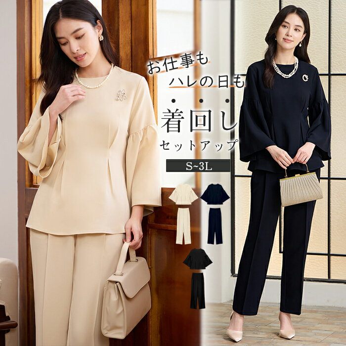 \楽天スーパーSALE全品最大25%OFF★/ セットアップ 卒業式 レディース 入学式 セレモニースーツ パンツスーツ ワイドパンツ ジャケット 春夏 パンツセットアップ ロングパンツ 通勤 上下セット スーツ トップス きれいめ 楽ちん おしゃれ 着回し抜群