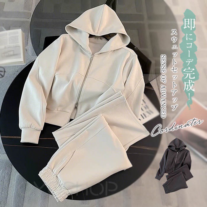 スウェット セットアップ レディース 春秋 上下セット パンツセット トレーナー ジップアップ 長袖 フード付き パンツ