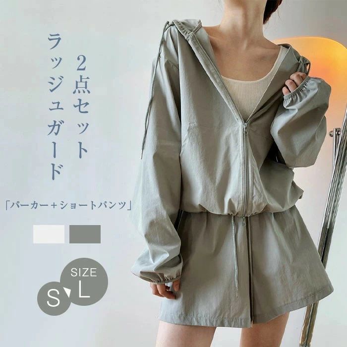 ラッシュガード 上下セット UVカット パーカー 長袖 ショートパンツ サーフパンツ 紫外線対策 日焼け防止 セットアップ レディース 女性用 大人 女の子 ママ ジップアップ ラッシュパーカー フード付き 大きいサイズ おしゃれ