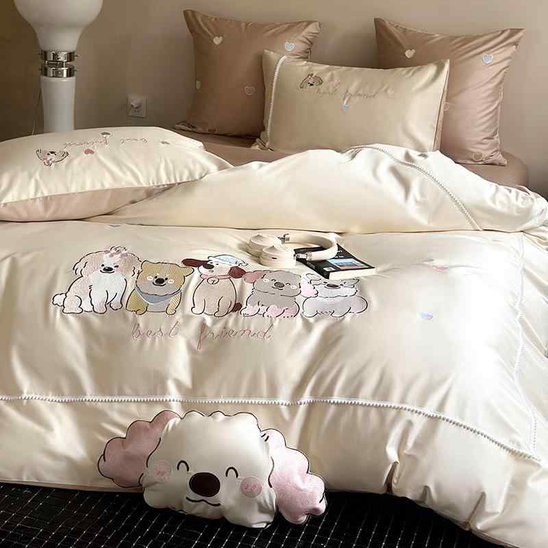 ・生地支数: 高支高密・染色加工: 活性印染・重量: 500g以下(不含)・柄: 卡通アニメ・スタイル: ベッドシーツ型・デザイン: 小犬パーティー・サイズ: 1.2m三件セット(150×200cm被子対応),1.5m四件セット(200×230cm被子対応),1.8m四件セット(200×230cm被子対応),2.0m四件セット(220×240cm被子対応)・素材: 長繊維綿・テイスト: カートゥーン・セット内容: 四件セット