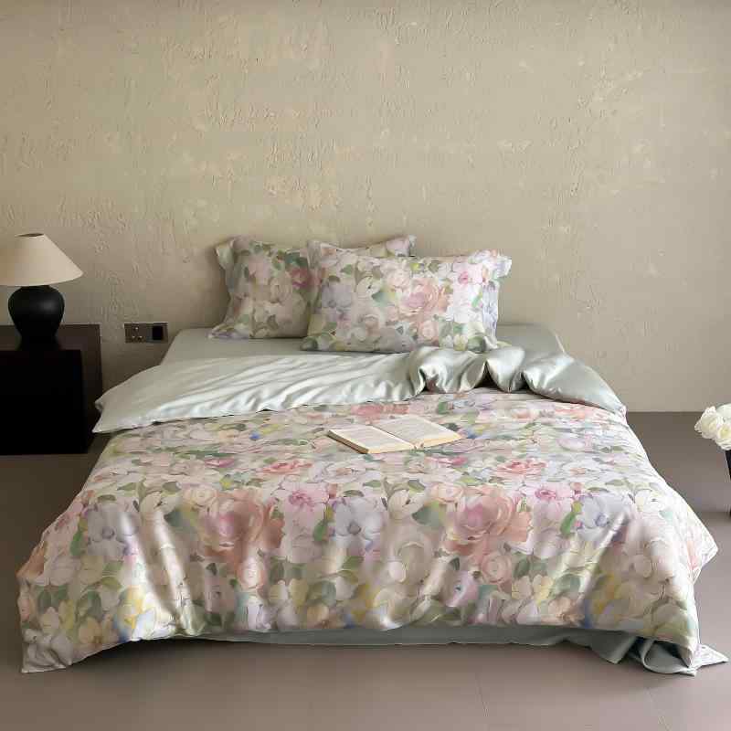春夏 寝具セット 接触冷感 再生繊維 花柄 田園風 高級感 滑らか 細糸 掛け布団カバー 枕カバー シーツ フィットシーツ 涼感 通気性 吸湿速乾 軽量 快適 ベッドリネン ホームファブリックス インテリア