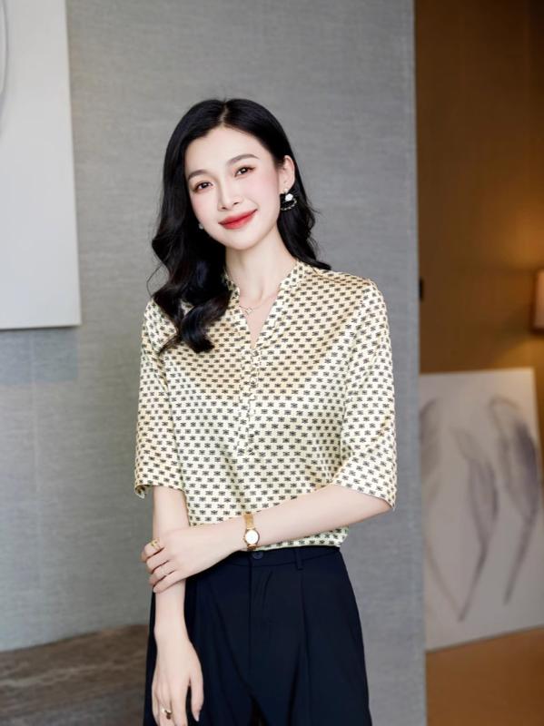 ブラウス レディース 春夏 Vネック 天然シルク ナチュラル 中袖 高級感 エレガント 上品 軽量 吸湿速乾 職場 オフィス 通勤 ビジネス カジュアル 日韓風