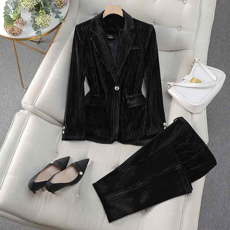 ヨーロッパと アメリカの 2025 年 新作 婦人 服、 ファッショナブルな 気質、 無地 カジュアル スーツ、 ラペル カラー ブロック、 ハイウエストパンツ、 女性 用 2 点 セット(x2)