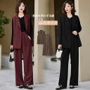 パンツスーツ セットアップ レディース 2点セット スーツ ジャケット ワイドパンツ 春 秋 ビジネススーツ テーラードジャケット 着痩せ シンプル カジュアル 女性らしい きれいめ お洒落 ビジネス オフィス フォーマル 通勤 OL 入学式 入園式 卒業式 卒園式