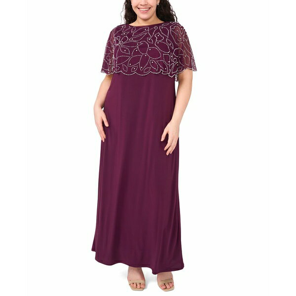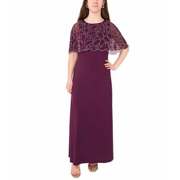 ミスク レディース ワンピース トップス Petite Round Neck Beaded Cape Maxi Dress Potent Purple