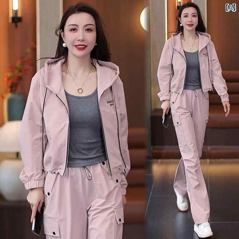 セットアップ レディース カラー 女性用 カジュアル スポーツ スーツ 2025 春の新 スタイル 春の ウェア 一式 の スリーピーススーツ