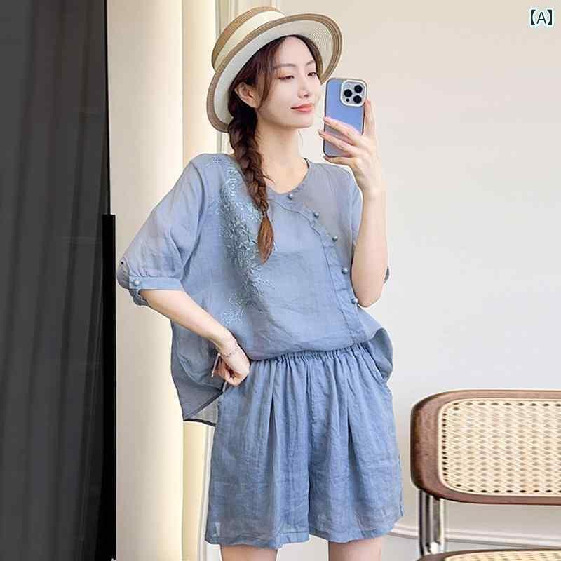 かわいい 春夏 ウエスタン ラミー スーツ トップ ショート パンツ ファッション 2025 夏 レジャー ゆったり スリム 文学 ツーピース