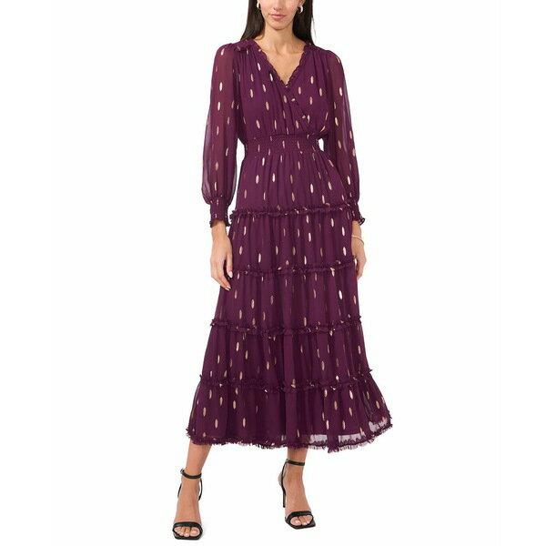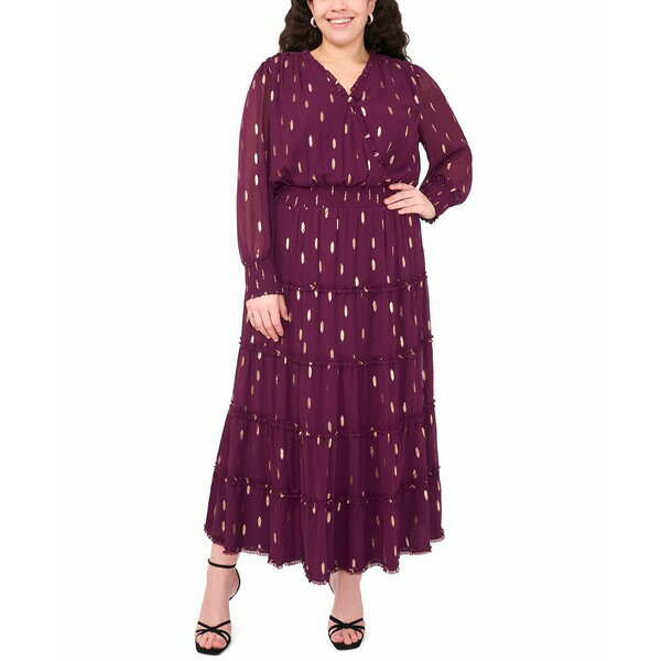 ミスク レディース ワンピース トップス Plus Size Clip Chiffon Tiered Maxi Dress Potent Purple