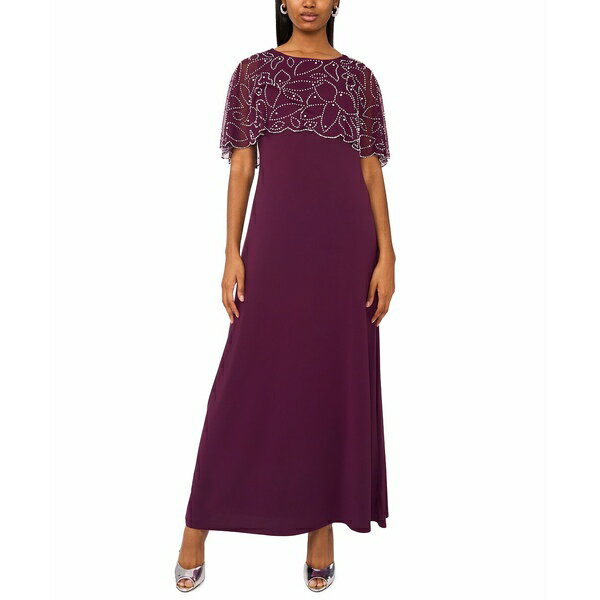 ミスク レディース ワンピース トップス Plus Size Round Neck Beaded Cape Formal Dress Potent Purple