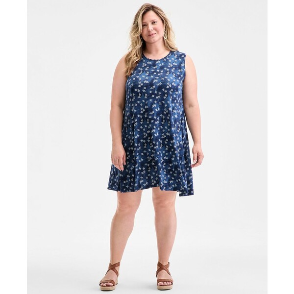 スタイルアンドコー レディース ワンピース トップス Plus Size Printed Sleeveless Flip Flop Dress, Exclusively at Macy's Spot Floral Blue