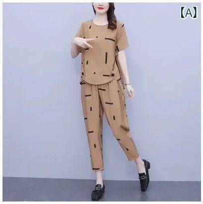 カジュアル セットアップ レディース ミセス ママ 夏服 おしゃれ ゆったり 大きいサイズ 体型カバー 半袖 トップス ツーピース 上下セット ポリエステル 無地 ポケット付き 普段使い デイリーウェア(x2)
