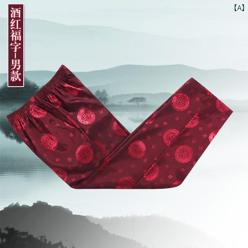 秋 メンズ レディース ボトムス ズボン チャイナ風 祖父母 シニア パンツ サテン 大きめサイズ 運動 カジュアル