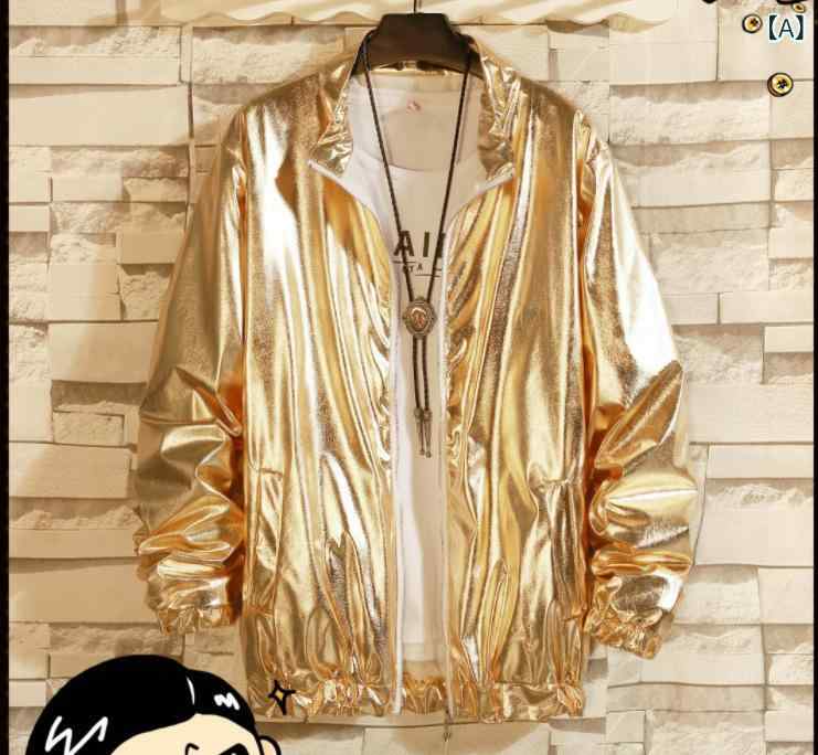 ジャケット メンズ 男性用 スタンドカラー 光沢感 シャイニー 春秋 ポリエステル素材 ダンスウェア ダンス衣装 発表会衣装 パフォーマンスウェア ストリートダンス 学生 チームウェア 団体服 アウター トップス シャンパンカラー