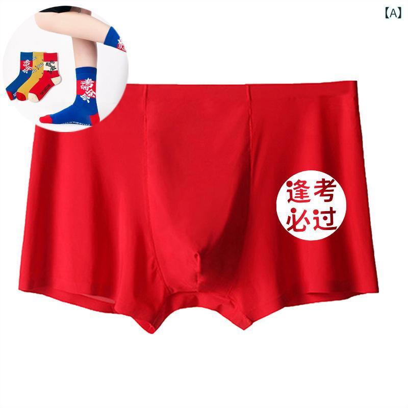 パンツ 男性用 ボクサーパンツ 赤色 コットン 結婚祝い 卯年 ラッキーアイテム 中腰 無地 通気 祥雲 金縁 赤 靴下 四季3
