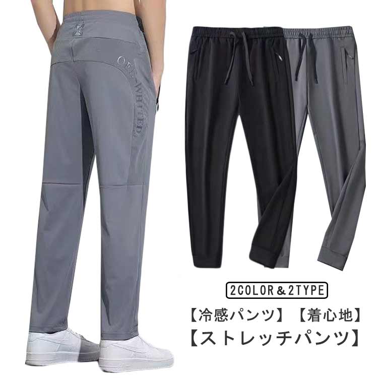 アイスシルクパンツ 冷感パンツ メンズ 薄手 夏 春 秋 涼しい ロングパンツ 軽い ランニングパンツ スポーツパンツ ストレート テーパード 裾口 大きいサイズ カジュアルパンツ ひんやり 部屋着 外出着 運動着