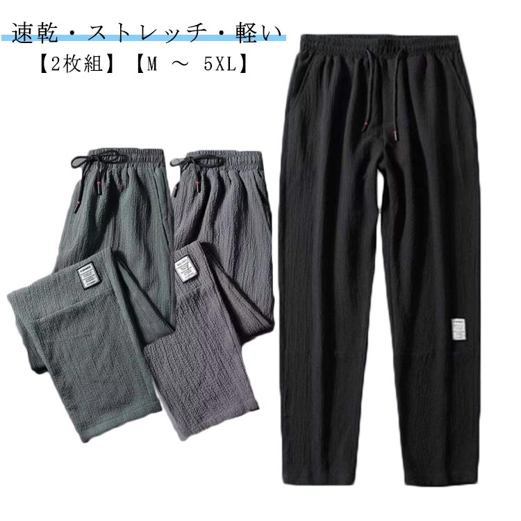 メンズ イージーパンツ ランニング ジョガーパンツ スポーツウェア 無地 ジャージパンツ トレーニングパンツ 【2枚組】スポーツパンツ 速乾 ストレッチパンツ 秋 夏春テーパードパンツ 運動着 オシャレ 部屋着 ゴルフパンツ イージーパンツ 薄手 ロングパンツ