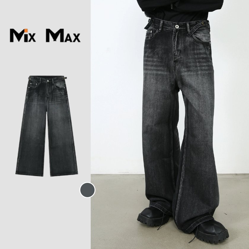 デニムパンツ バギー レトロ 重厚 ウォッシュド ワイドレッグ ジーンズ メンズ アメリカン おしゃれデザイン ブレスト ストレート パンツ